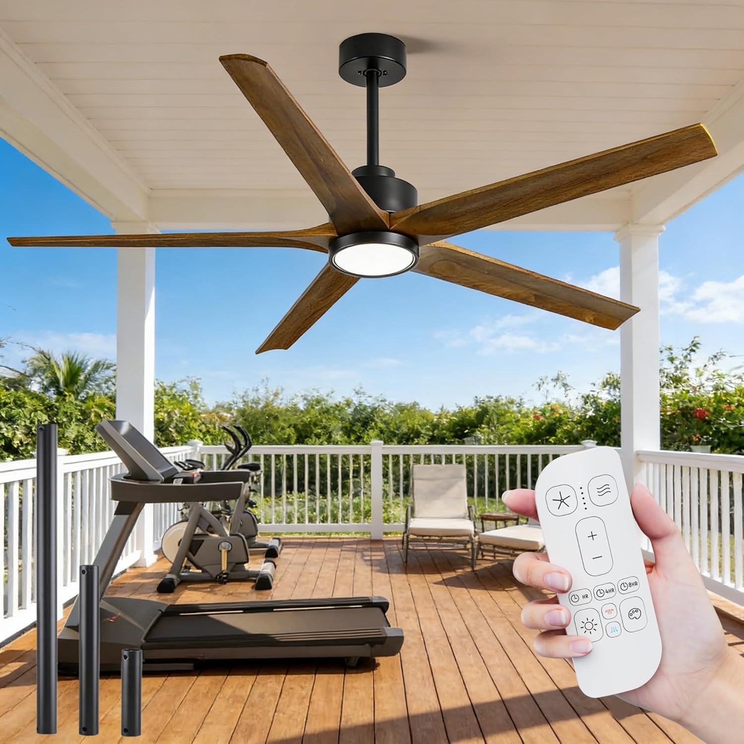 60 Inch Outdoor Ceiling Fan with Light, Smart Solid Wood Ceiling Fans for Patio, Remote/App/Alexa Control, High CFM Quiet DC Motor, Modern Rustic Farmhouse Ceiling Fan for Indoor Exterior Porch