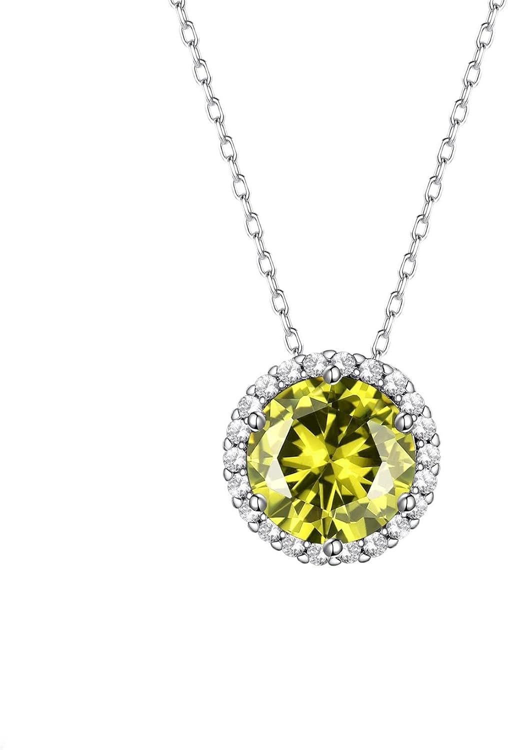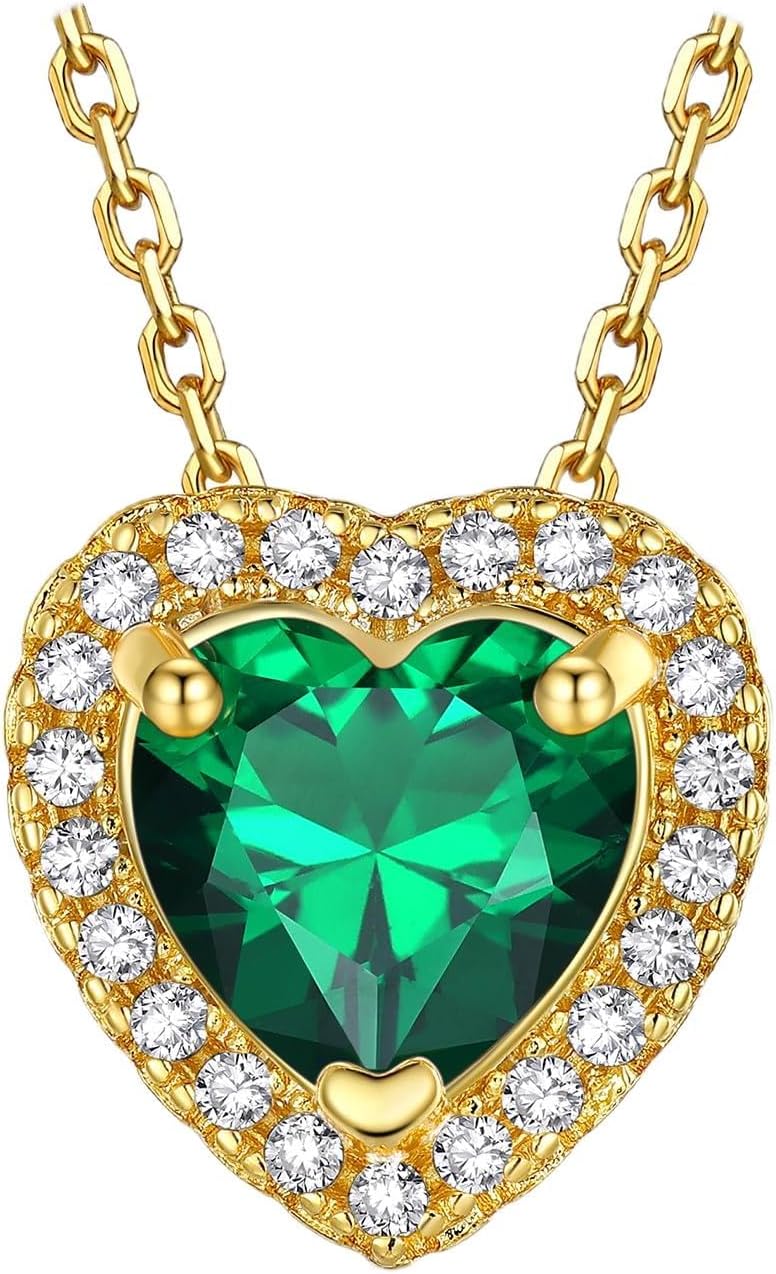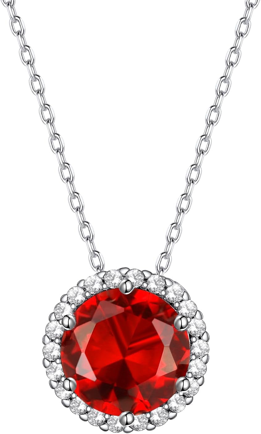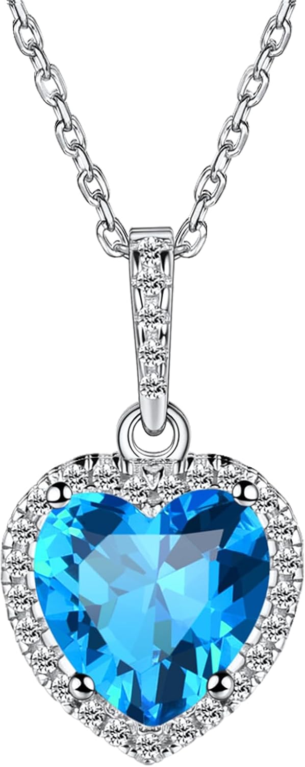 Bestyle Sparkling 925 Sterling Silver Birthstone Necklaces for Women, Created Heart/Round/Teardrop/Square Crystal Solitaire Pendant Diamond Necklace, Great Birthday/Anniversary/Wedding Gifts