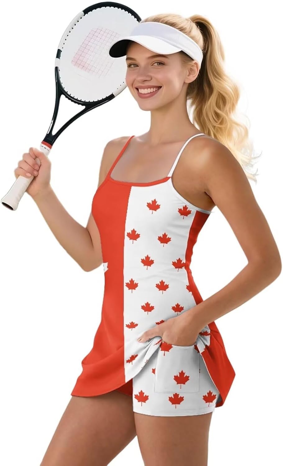 Biyejit Womens Tennis Dress, Athletic Dress with Built-in Shorts Pockets Summer Mini Dresses for Women Golf Outfits for Workout XS-2XL 【Features】 Sleeveless / Spaghetti Strap / athletic dress with shorts / exercise activewear 【Occasions】 It is a perfect gift for women, mothers, young girls and friends on Independence Day, Halloween, Christmas. Suitable for Outdoor activities like Golf, Basketball, Fishing, Sailing, Swimming, Hiking, Running, Jogging, Workout, Fitness etc. 【Washing Care】 Hand washable or machine washable, do not soak for a long time, do not bleach. Tips Please allow little color difference due to different camera or light environment. Due to different measurement methods, it is reasonable for 1-2cm size deviation.