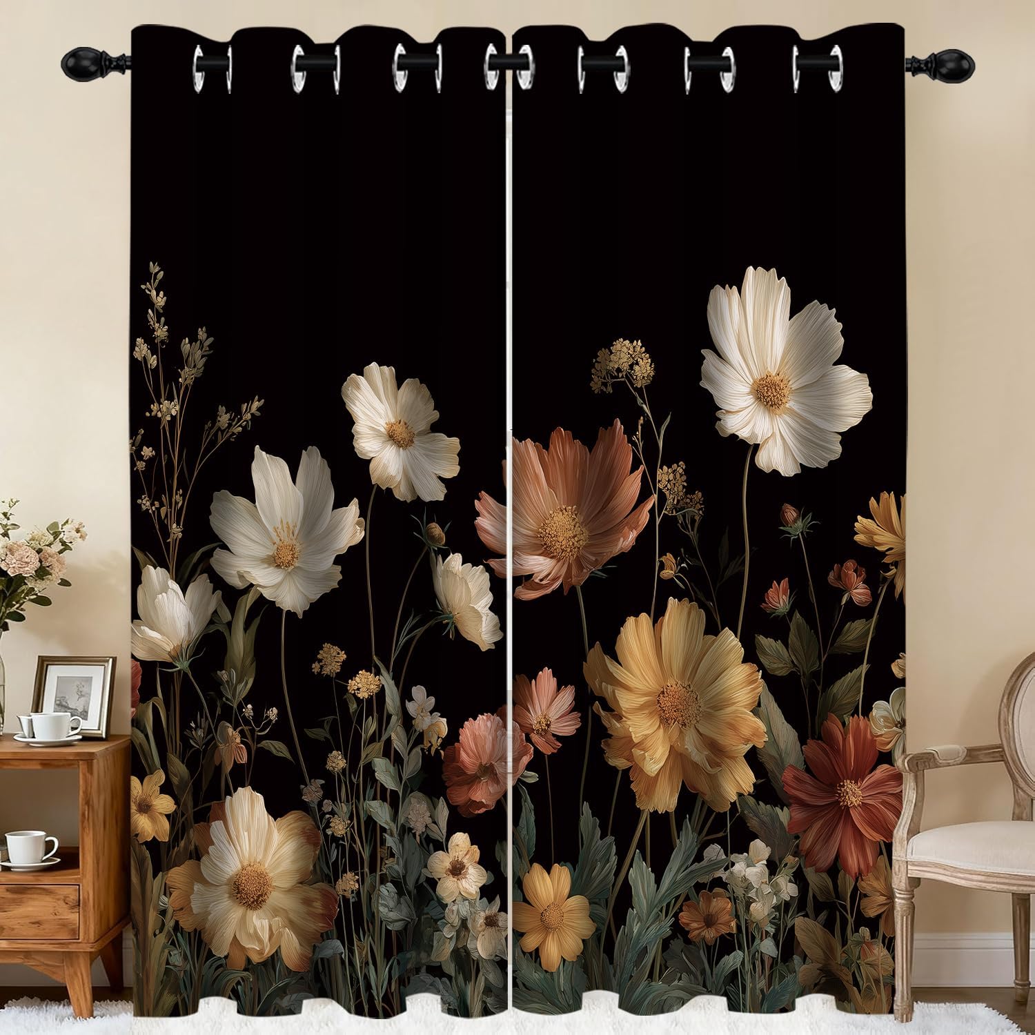Material: Premium quality polyester fabric with 85% light blocking and it's soft to the touch, high-definition digital printing technology. Blackout Curtain Size: width 52 inches, length 84 inches and include 2 curtain panels. Care Tips: Machine wash cold, gentle cycle. Avoid bleach. Air dry. Use low heat iron if necessary. Spot clean for stains. Notes: The digital images we display have the most accurate color possible. However, due to difference in computer monitors and light,the window curtain's color may be slightly different from the pictures. Please allow a little differences due to manual measurement.