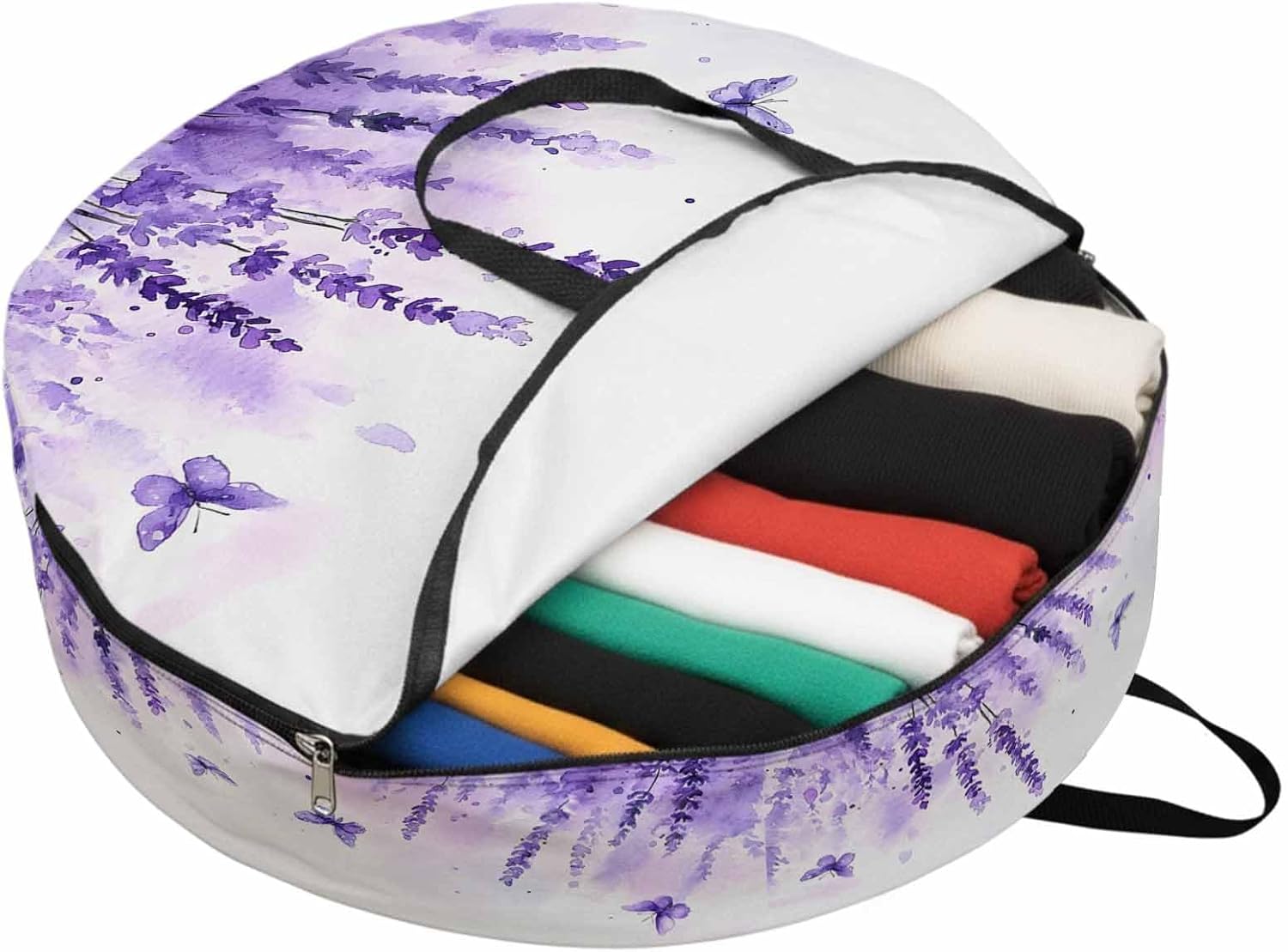 Reclaim Your Closet Space with the Round Storage Solution! Material: polyester Diameters: 24 inch, 30 inch, 36 inch Depth: 7 inches Package Includes: Round Storage Bag One Bag, Endless Possibilities: Whether you are swapping out your summer wardrobe, moving into a new dorm, or packing away holiday decorations, this bag has you covered. The circular design is uniquely suited for: Bedding: Comforters, quilts, sheet sets, and oversized pillows. Clothing: Winter coats, sweaters, and bulky ski gear. Home Decor: Holiday wreaths, garlands, and floral arrangements. Outdoor Gear: Camping blankets, sleeping bags, and beach towels. Dual Zippers: The high quality double zipper design allows the closet organizer to open wide from both sides, making it effortless to load and unload even the bulkiest comforters or wreaths. Reinforced Handles: Sturdy, reinforced handles are securely stitched to provide extra strength and a comfortable grip when carrying heavy loads or pulling the bag from under a bed. Clear Label Pocket: A transparent built-in label holder allows you to quickly identify the contents of each bag without ever having to unzip it, keeping your storage perfectly organized.
