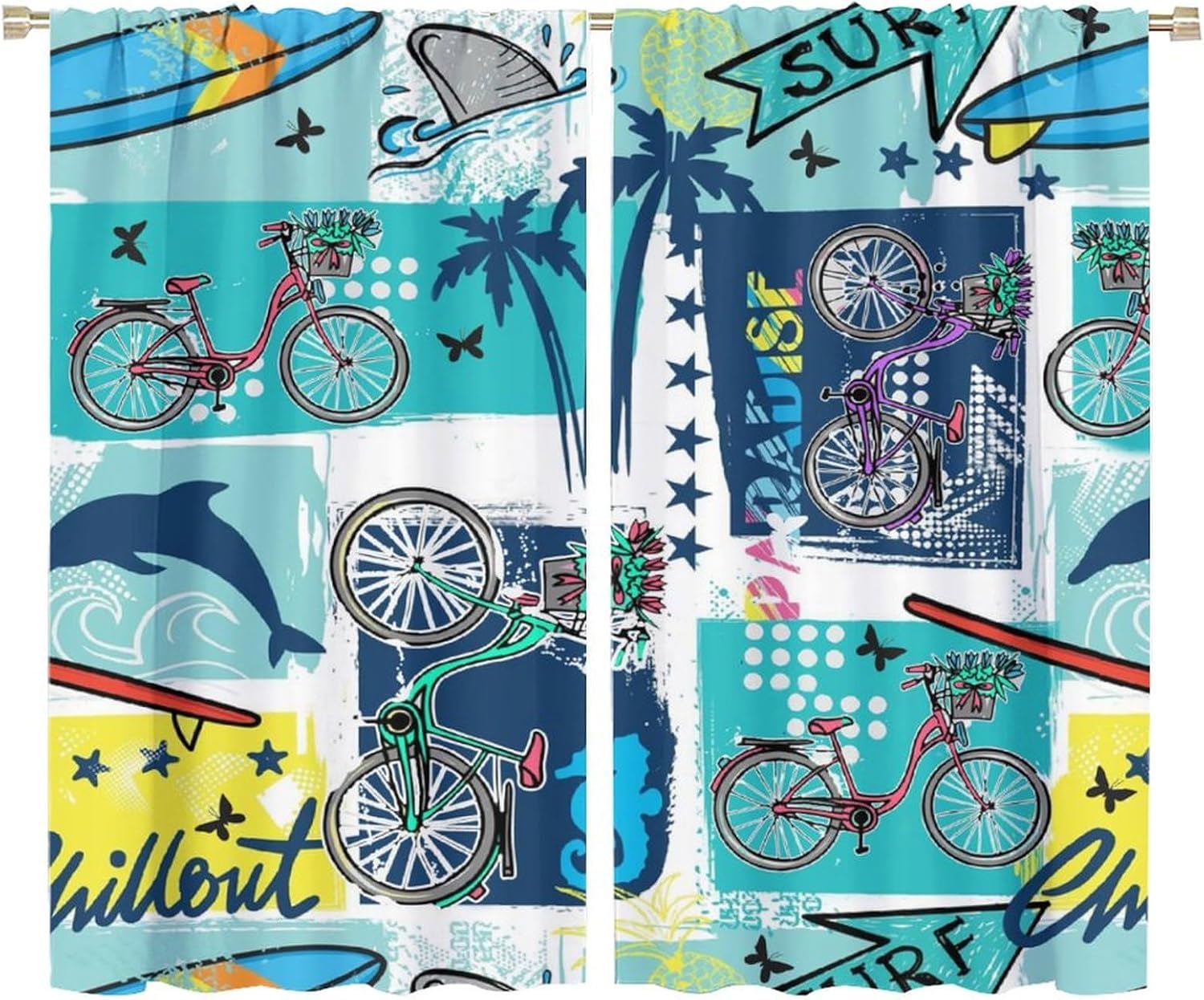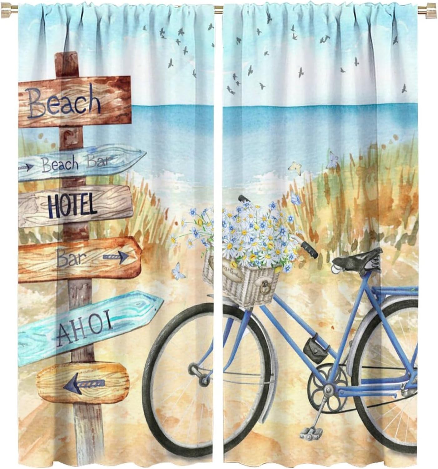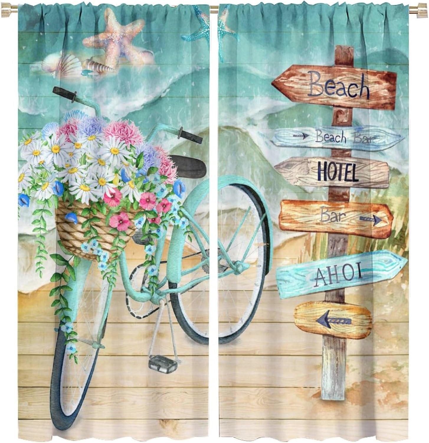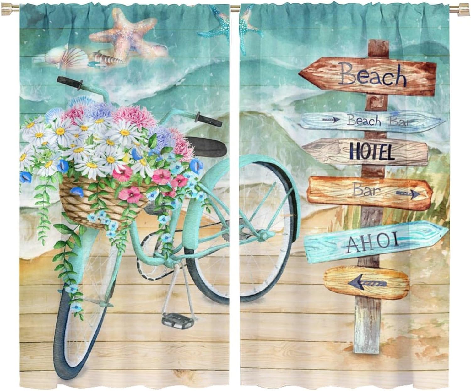 Welcome to our store. Total size: 45" L × 42" W (114cm × 107cm),Includes two pieces,each of which measures:45" length × 21" width (114cm × 53.5cm). Total size: 54" L × 42" W (137cm × 107cm),Includes two pieces,each of which measures:54" length × 21" width (68.5cm × 53.5cm). Total size: 63" L × 42" W (160cm × 107cm),Includes two pieces,each of which measures:63" length × 21" width (160cm × 53.5cm). Total size: 63" L × 55" W (160cm × 140cm),Includes two pieces,each of which measures:63" length × 27.5" width (160cm × 70cm). Total size: 63" L × 63" W (160cm × 160cm),Includes two pieces,each of which measures:63" length × 31.5" width (160cm × 80cm). Total size: 72" L × 63" W (183cm × 160cm),Includes two pieces,each of which measures:72" length × 31.5" width (183cm × 80cm). Total size: 63" L × 72" W (160cm × 183cm),Includes two pieces,each of which measures:63" length × 36" width (160cm × 91.5cm). Total size: 84" L × 84" W (214cm × 214cm),Includes two pieces,each of which measures:84" length × 42" width (214cm × 107cm). People always prefer using some decor to highlight the visual aesthetic. The brebasf Watercolor Tropical Beach Bicycles curtains is the beautiful choice for bedroom.Good and Healthy materialOur Abstract Nautical Theme Sea Animals Starfish Seashells curtain is made from a safe and durable polyester fabric,a healthy choice for any living room.★ 95% polyester fabric.★ Easy to install. Easy to hang.★ Various style theme design,so that the bathroom is full of color and fun.Note1. Please allow a little bit of size deviation due to manual measurement.2. Due to differences in computer monitors,please allow a little bit of color difference between the picture and the object.