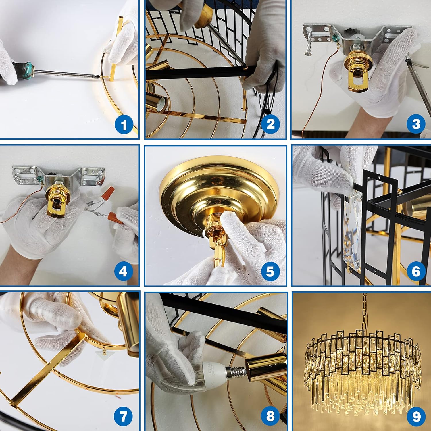 WALUIN Crystal Chandelier for Dining Room, Modern Black Chandelier Round 11-Light Crystal Pendant Light for Living Room, Kitchen Island, Entrance,23.2 Inch