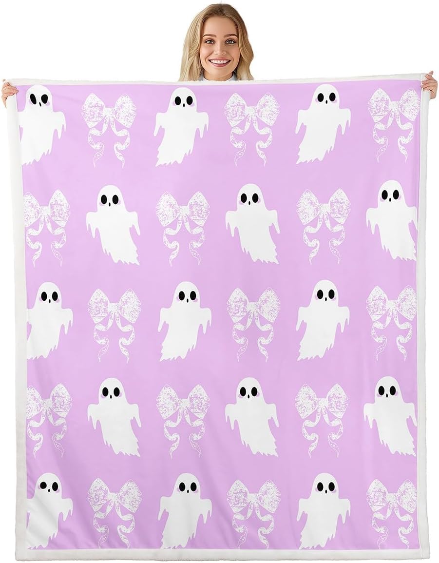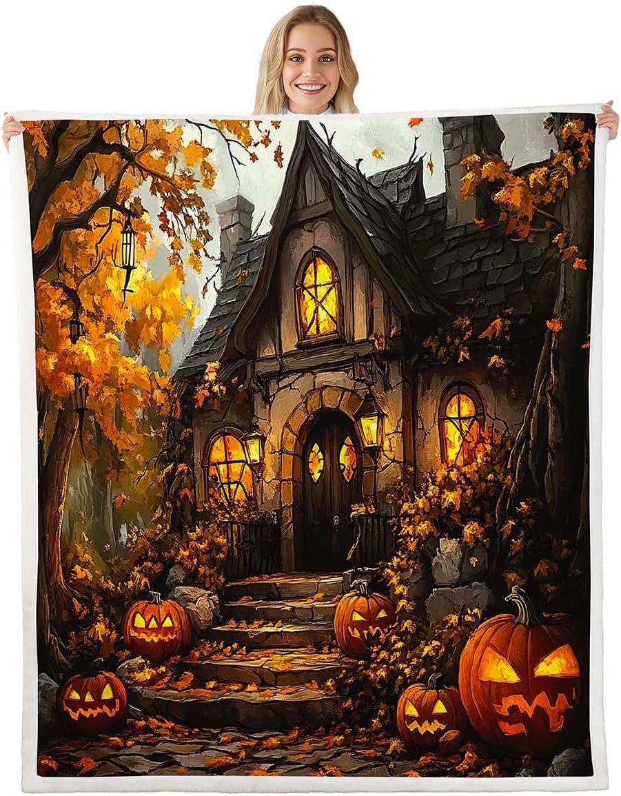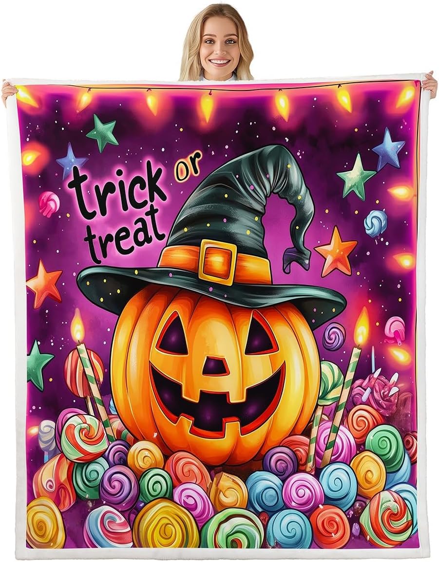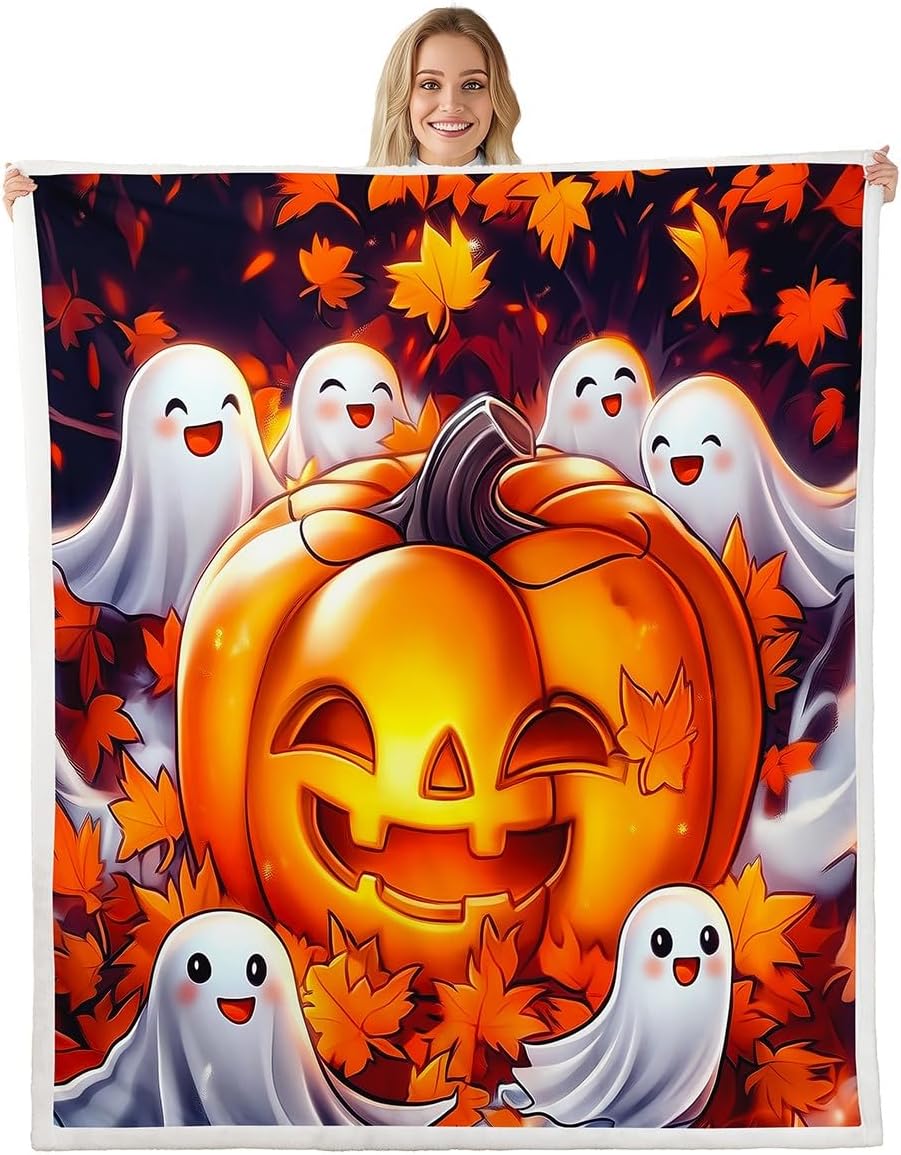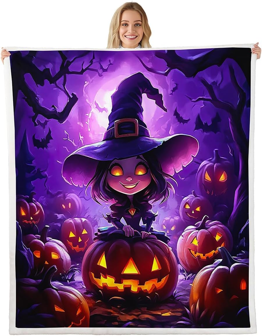 Erosebridal Cute Halloween Sherpa Blanket Cartoon Cat Animal Fuzzy Plush Throw Fall Pumpkin Fleece Blanket for Kids Boys Girls,Happy Holiday Decor for Bed Couch 40"x50"