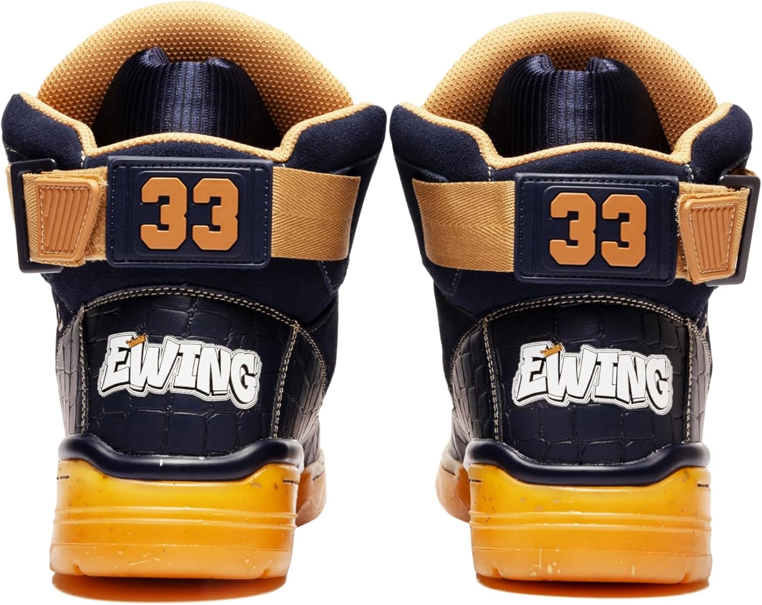 The flagship Ewing Athletics shoe, the 33 HI is an exact retro of the 1990 original, and features a classic reversible ankle strap that can be worn on the front or back of the shoe, and a full length PU midsole for cushioning. To Celebrate The 30th Anniversary Of The Legendary Big Daddy Kane's Live Performance At Madison Square Garden In NYC Where He Brought On Stage Two MC's Who Would Later Become Two Of The Greatest Rappers Of All Time, The Person That Recorded That Infamous Moment DJ Mister Cee & Ewing Athletics Have Collaborated To Present To You The "WHERE BKLYN AT" 33 HI. Featuring a premium faux crocodile leather and suede upper along with Gold accents and special branding and packaging. Available in Mens Sizes 5-16.