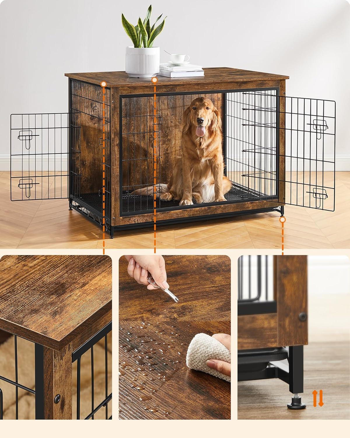 | Item Type Name | Indoor Dog Cage Side End Table, XL Pet Wood Kennel for Large and Medium Dogs up to 80 lb with Multi-Purpose Removable Tray, Double-Door Pet House, Rustic Brown |