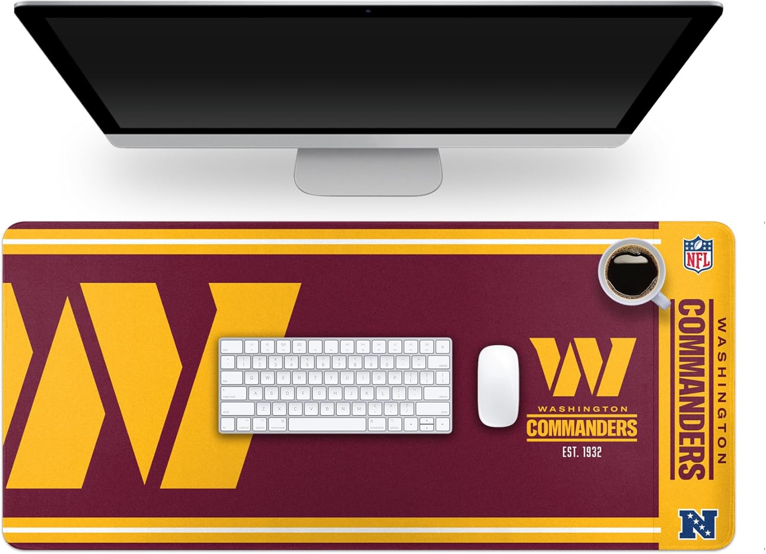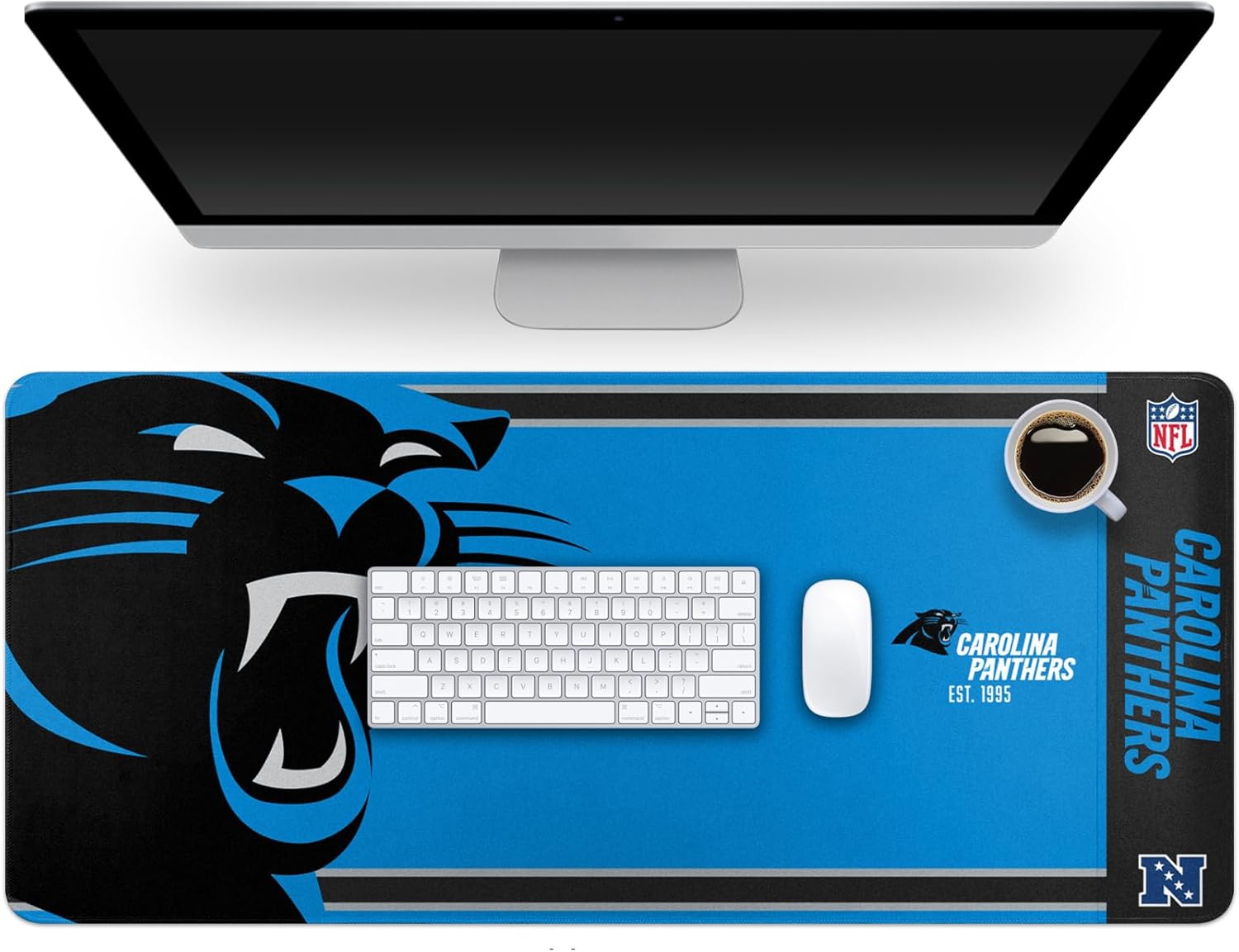 Transform your workspace with this officially licensed NFL desk pad from FOCO, featuring your team's primary logo and established wordmark design. The generous 35" x 16" dimensions provide ample space for your mouse, keyboard, and other desktop essentials, while the premium polyester surface ensures smooth tracking and desk protection. At just 0.2 inches thick, this sleek black rectangular mat delivers a professional appearance without adding bulk to your workspace. Perfect for home offices, gaming stations, or any setup where you want to showcase your team spirit, this versatile desk pad combines functionality with fan loyalty. The durable construction protects your desk from daily wear while maintaining consistent mouse performance. Whether you're working, gaming, or browsing, this desk pad creates an organized, professional environment while proudly displaying your favorite NFL team's heritage. The non-slip rubber backing keeps the mat securely in place during use, making it an ideal addition to any fan's workspace.