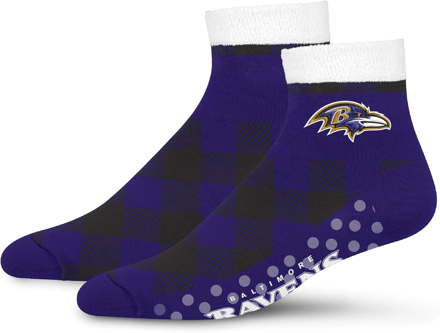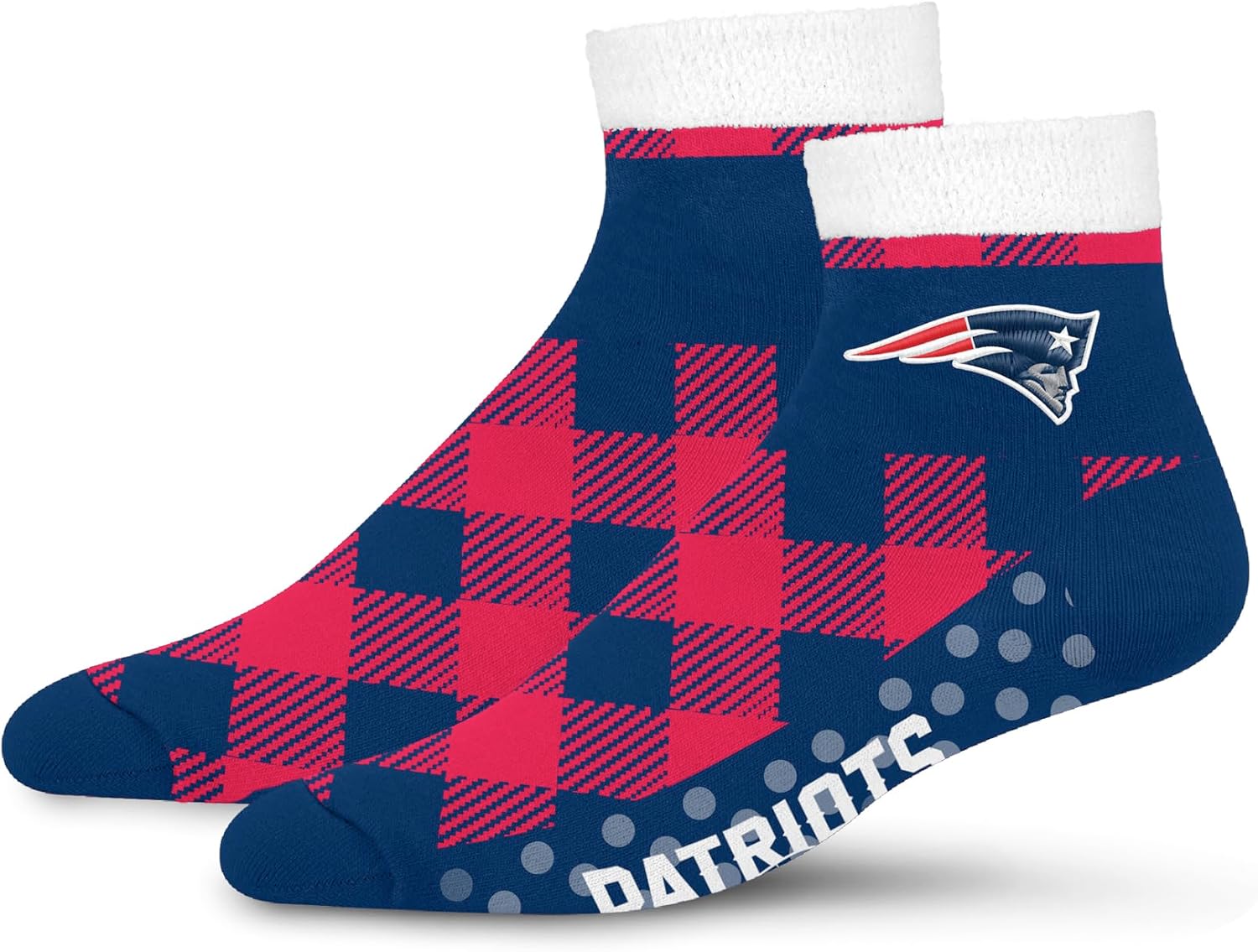 Stay home and watch the game with these NEW Cozy Cabin socks. Features slip resistant grippers and vibrant team colors. Makes a perfect gift for the fan in your life. They are a fashionable way to show your team pride from head to toe. Fits Ladies Shoe size 5-9. Officially licensed with long lasting embroidered team logos, and colors, that won’t let you down! Fabric content: 83% Acrylic, 14% Polyester, 2% Spandex, 1% Rubber. Machine washable, tumble dry low.