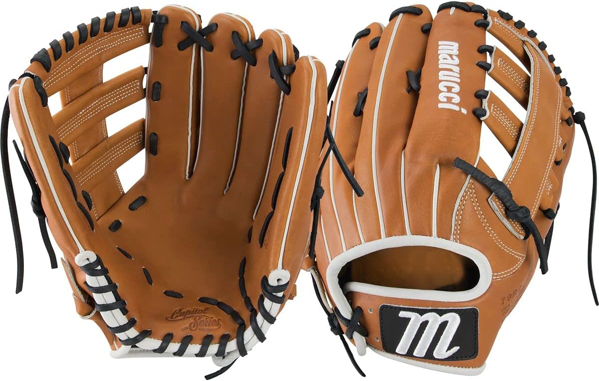 The all new Capitol Series from Marucci features premium Japanese-tanned USA Kip leather for ideal stiffness with lightweight feel. The highest-grade sheepskin finger lining is used with padding-wrapped thumb and loops. Japanese Kip leather palm lining reinforces structure with a velvety smooth touch. This glove also features professional-grade USA rawhide laces from Tennessee Tanning Co. and moisture-wicking mesh wrist lining with added memory foam padding. - 12 Inch Model - Two-Piece Solid Web - Premium Japanese-tanned USA Kip leather - Highest-grade sheepskin finger lining - Professional-grade USA rawhide laces - Japanese Kip leather palm lining - Moisture-wicking mesh wrist lining