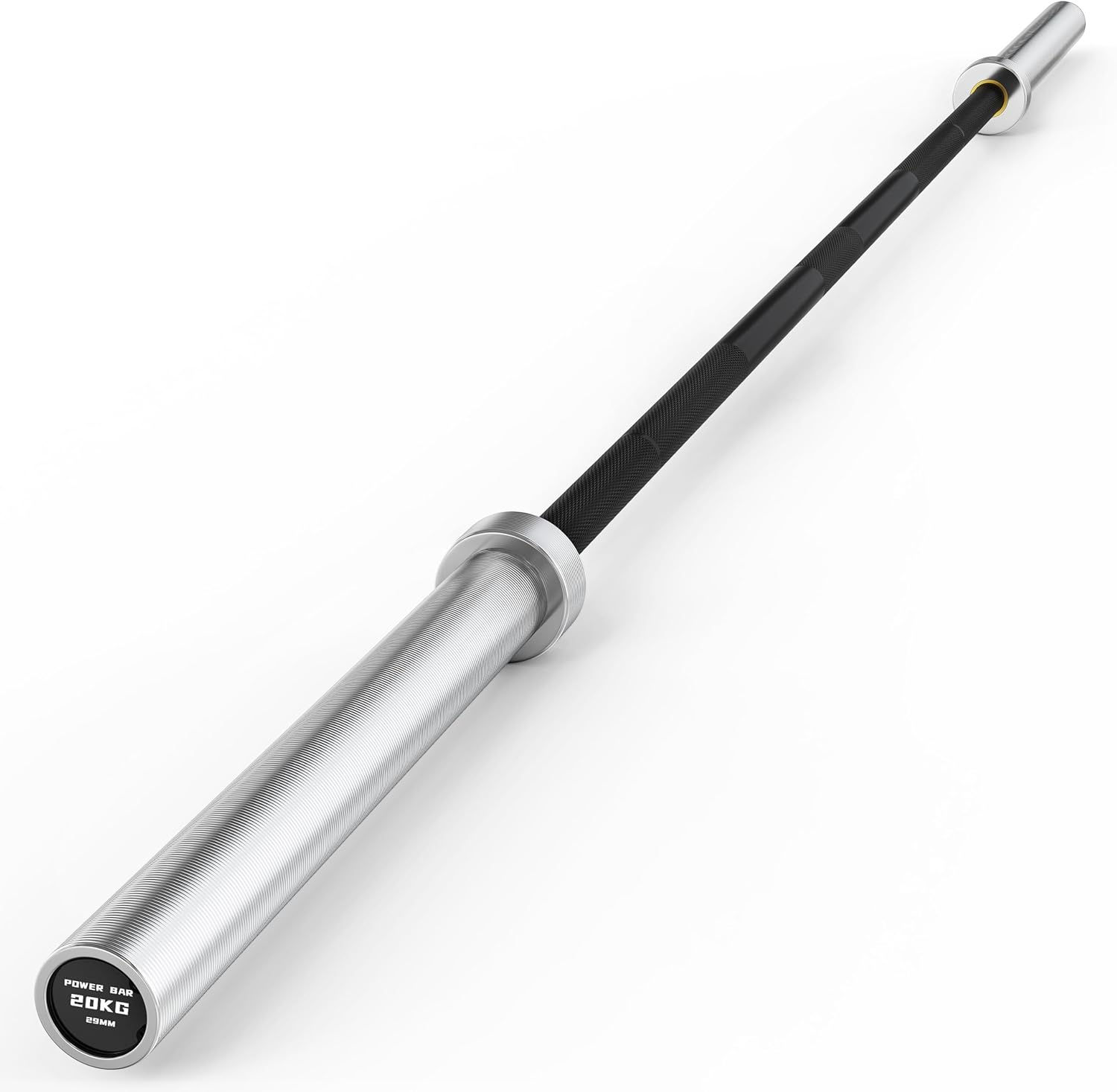 HANDBODE Olympic barbell is crafted with high-quality materials and finished in durable coatings to provide a long-lasting barbell. Made to accommodate weight plates with a 2-inch center hole, also known as Olympic Weights.The barbell is the simplest looking piece of equipment in the gym, but it’s one of the most complex to learn how to use. When a beginning trainee uses a barbell for the first time, the body’s response is mainly mental. Learning how to move a barbell teaches our minds how to use all of our muscles together to move an object efficiently. Olympic barbell moves require balance and coordination, unlike machines, resulting in better performance during fitness competitions.