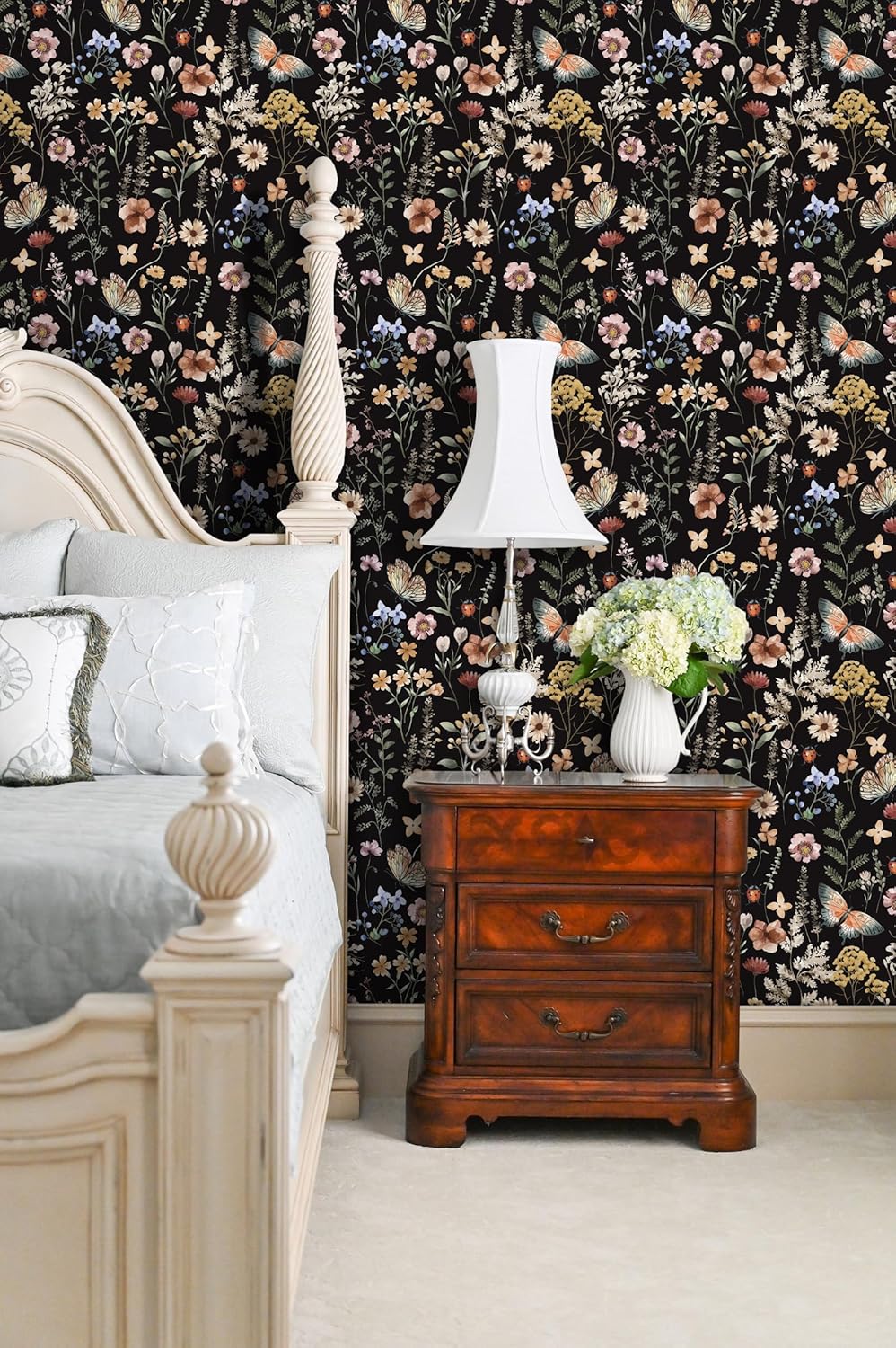 Timeet Peel and Stick Wallpaper Boho Floral Wallpaper Multicolor Flower Wallpaper Self Adhesive Removable Wallpaper for Room Wall Covering Shelf Cabinets Decor 16.14in x 32.8ft