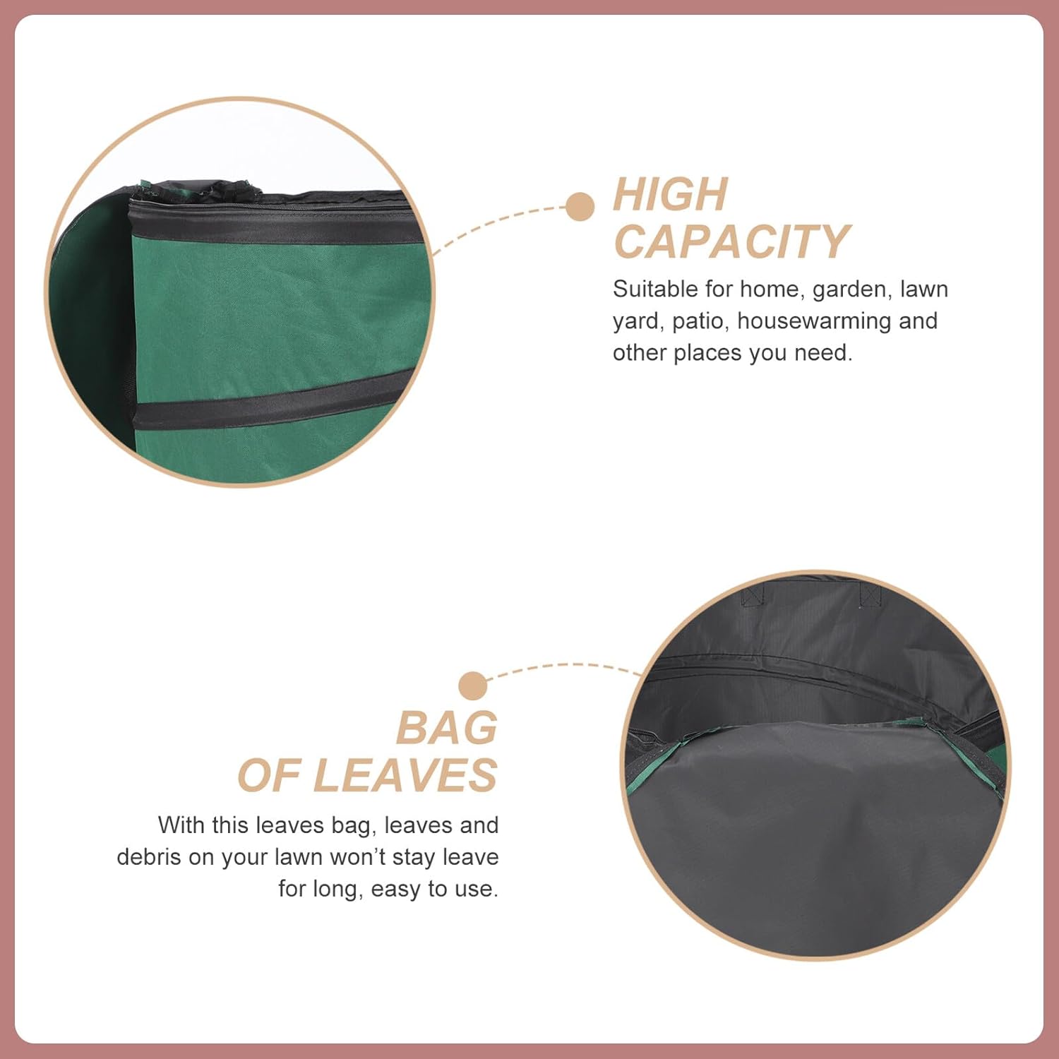 Package List 1 Waste Bag Characteristics -Product Info:Nut collection bag - Color: Dark Green - Material:Oxford cloth - Size: About 50.00X47.00X47.00cm/19.65X18.47X18.47in - Suitable for home, garden, lawn, yard, patio, housewarming and other places you need Garden Fallen Leaves Bag. - Garden bag use for large amounts of lightweight garden waste such as leaves and plant waste leaf collector bag - Good material and fine workmanship make this bag durable and can be used for a long time. - Large enough capacity leaf bag can meet your basic needs, making your garden cleaning process more convenient leaf collector. - With this leaves bag, leaves and debris on your lawn won’t stay leave for long, easy to use foldable leaf collector.Goods DescriptionGardening Storage Bag Work well for all yard cleaning.leaf bag holder The large size is also perfect for storing sundries in the utility room, garage.Fallen Leaves Bag With reasonable size, easy to use for indoor and outdoor gardening.leaf bags Can also use to store , clothes or separate laundry
