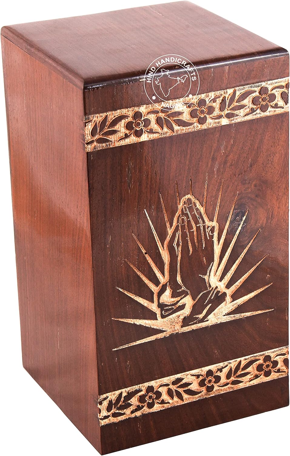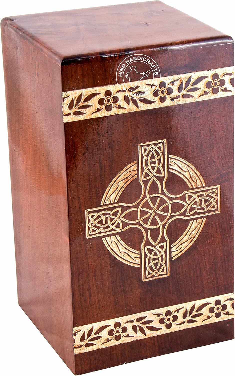 Honor Strength and Serenity – The Anchor Wooden Cremation Urn Cherish the memory of your loved one with this beautifully handcrafted wooden cremation urn, featuring a detailed anchor engraving with jute rope design — a symbol of faith, stability, and eternal rest. Perfect for sea lovers, sailors, or those who found peace near the ocean. Superior Craftsmanship: Made from solid hardwood, this urn offers long-lasting durability and natural elegance. Every piece is hand-polished to reveal the intricate wood grain and finished in a warm antique tone that adds sophistication to any space. Secure & Functional Design: The base is fitted with a screw-fastened bottom panel, ensuring ashes remain safely contained. This practical and reliable closure makes it suitable for both home memorial display and burial ceremonies. Spacious & Balanced Dimensions: Measuring 11" L x 6" W x 6" H and holding 250 cubic inches of ashes (ideal for adults up to 250 lbs), the urn combines functionality with beauty, offering ample storage while maintaining an elegant profile. Symbolism & Serenity: The anchor engraving represents hope and stability through life’s journey — a powerful emblem of faith and peace. The fine jute rope detailing enhances its nautical charm, making it a perfect tribute for maritime enthusiasts. Artisan-Made & Handcrafted: Each urn is individually created by skilled artisans using sustainable hardwood and traditional craftsmanship. Every piece reflects dedication, care, and emotional depth — ensuring your loved one’s legacy is preserved with respect. A Lasting Tribute of Love: This wooden memorial urn is more than a container — it’s a timeless keepsake symbolizing connection, peace, and strength. Designed to stand beautifully in your home, columbarium, or memorial site, it honors your loved one with heartfelt dignity.